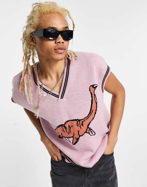 ASOS DESIGN - Gebreide tanktop met dinosaurus-motief in roze