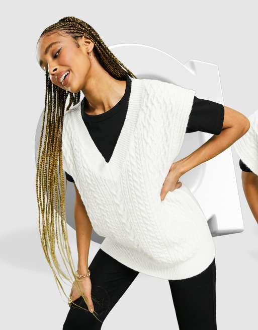ASOS DESIGN - Gebreide tanktop met kabels in crème