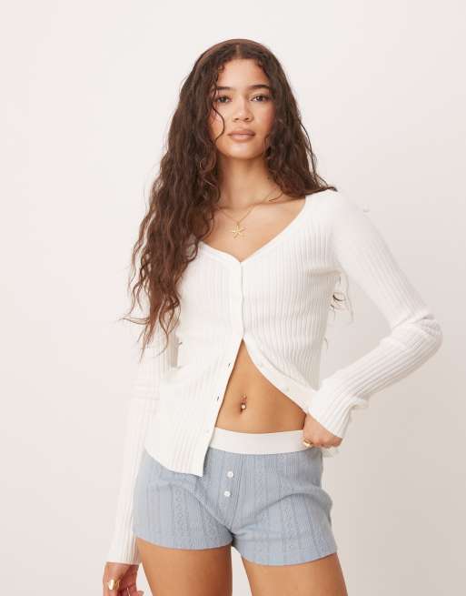 ASOS DESIGN - Gebreide top met V-hals en knoopsluiting in wit