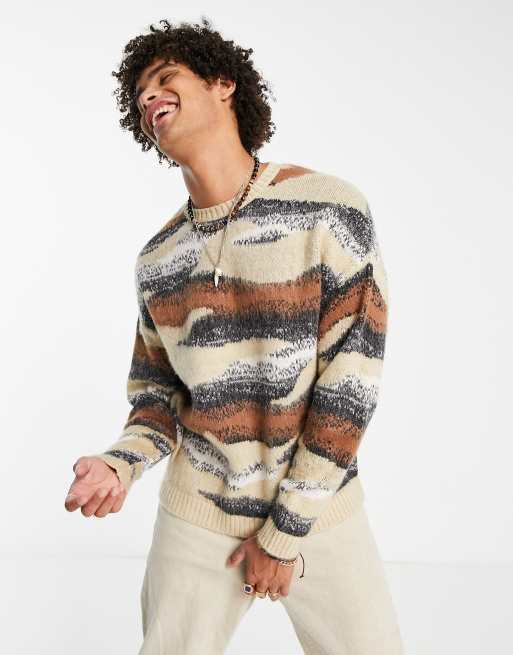ASOS DESIGN - Gebreide trui met abstracte print in beige