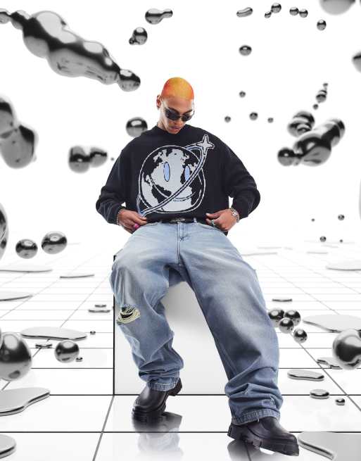 ASOS DESIGN - Gebreide trui met motief van vrolijke planeet