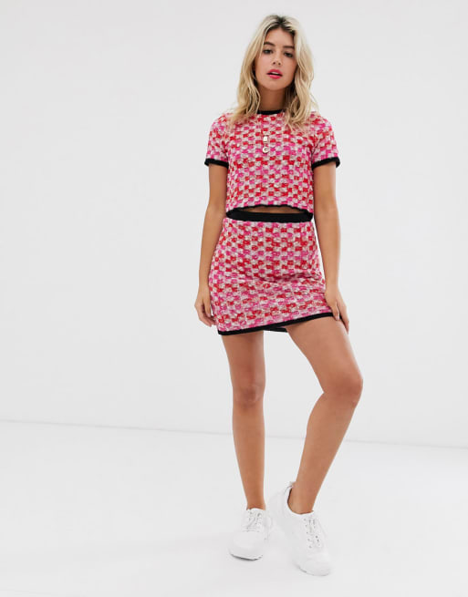 ASOS DESIGN - Gebreide tweed combi-set met ruitprint