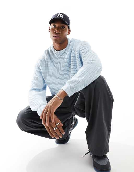 ASOS DESIGN - Gebreide visserstrui met oversized pasvorm en ribbels in blauw