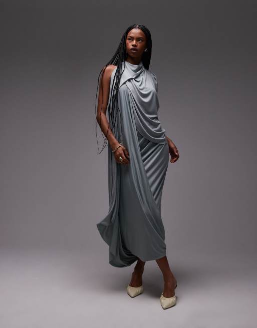 ASOS DESIGN - Gedrapeerde maxi jurk van modal met blote schouder in saliegroen