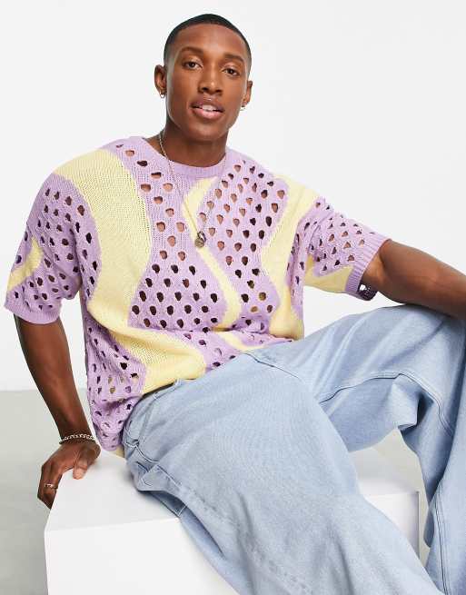 ASOS DESIGN - Gehaakt T-shirt in pastel lila