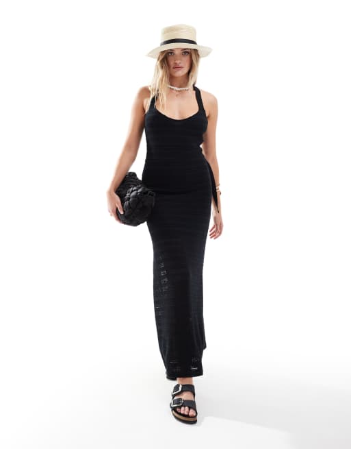 ASOS DESIGN - Gehaakte maxi-jurk met gekruiste bandjes en D-ringen op de rug in zwart