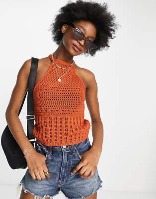 ASOS DESIGN - Gehaakte top met halternek in oranje