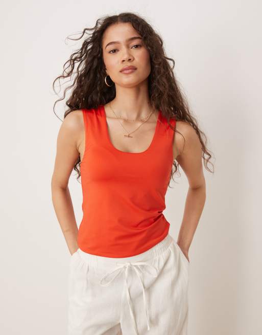 ASOS DESIGN - Gelaagd hemdje met lage ronde hals in rood