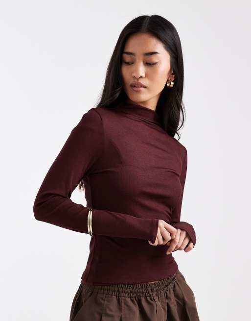 ASOS DESIGN - Gelaagde geruite top met lange mouwen in paars