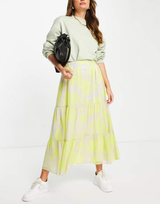 ASOS DESIGN - Gelaagde lange rok met neonkleurige bloemenprint