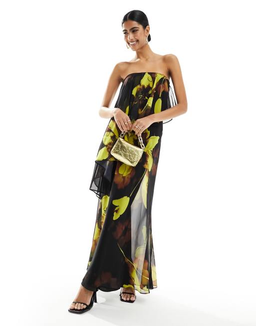 ASOS DESIGN - Gelaagde, schuingesneden lange bandeau-jurk met opvallende bloemenprint