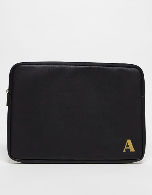 ASOS DESIGN - Gepersonaliseerde laptophoes met letter A in zwart