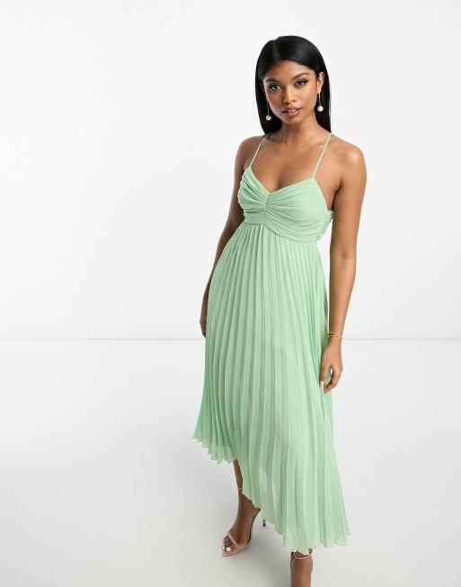 ASOS DESIGN - Geplooide midi jurk met geplooid lijfje en bandjes in saliegroen