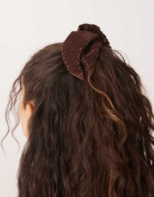 ASOS DESIGN - Geplooide scrunchie in chocoladebruin