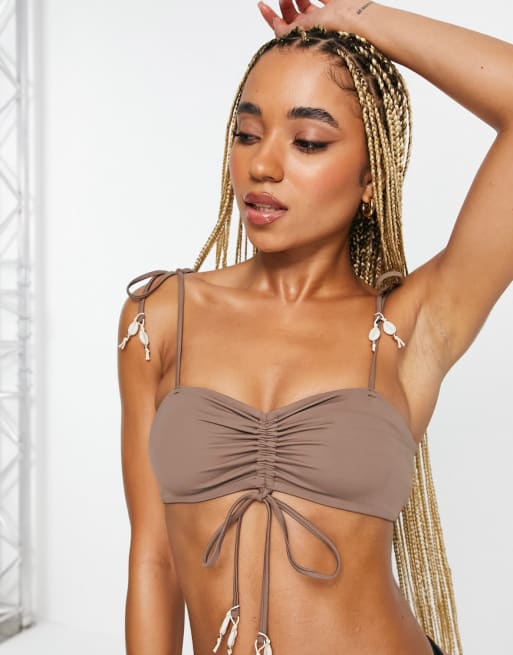 ASOS DESIGN - Gerecyclede bikini met schelpdetail in bruin