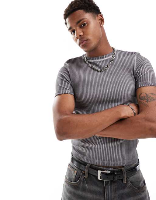 ASOS DESIGN - Geribbeld cropped muscle fit T-shirt in grijs met wassing
