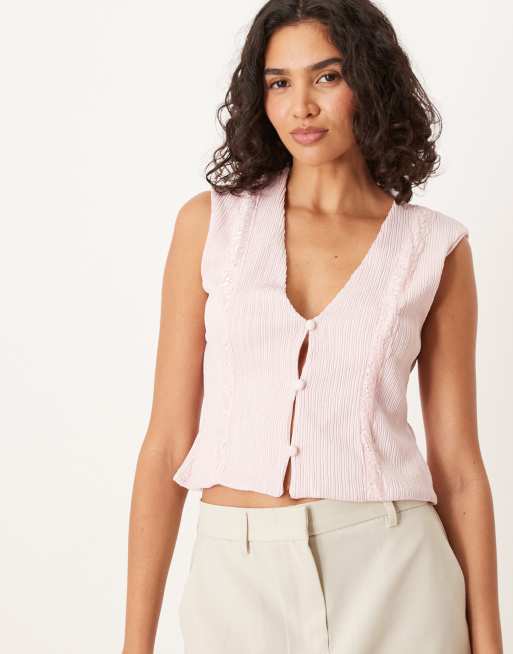 ASOS DESIGN - Geribbeld gilet met kanten zoom in babyroze