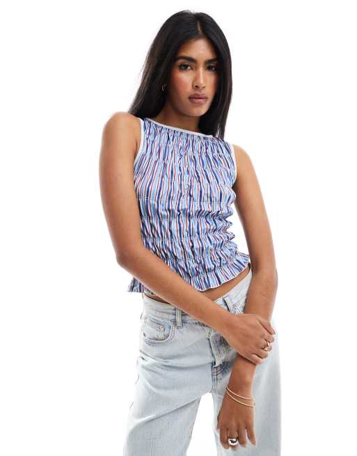 ASOS DESIGN - Geribbeld hemdje in blauwe streep