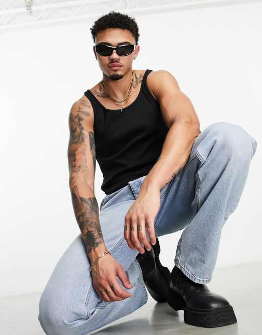 ASOS DESIGN - Geribbeld muscle fit hemd in zwart