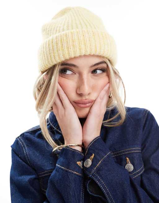 ASOS DESIGN - Geribbelde beanie van wolmix in geel