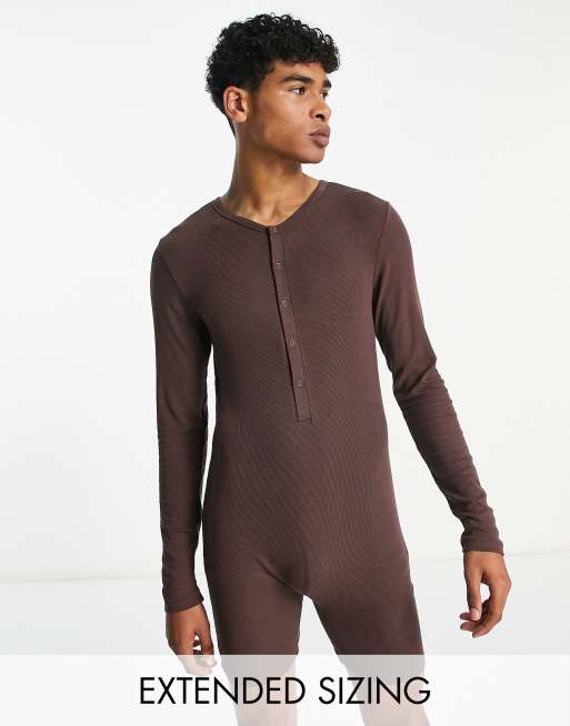 ASOS DESIGN - Geribbelde body met lange mouwen en drukknoopsluiting in bruin