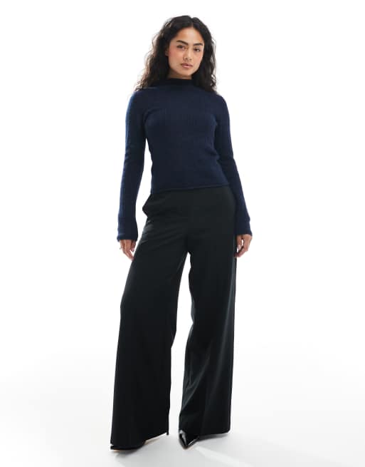 ASOS DESIGN - Geribbelde gebreide ruimvallende top met opstaande boord in marineblauw