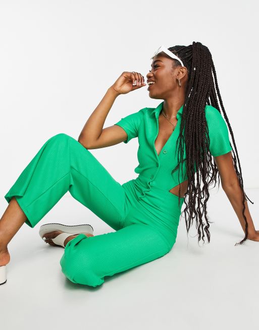 ASOS DESIGN - Geribbelde jumpsuit van jersey met kraagje in groen