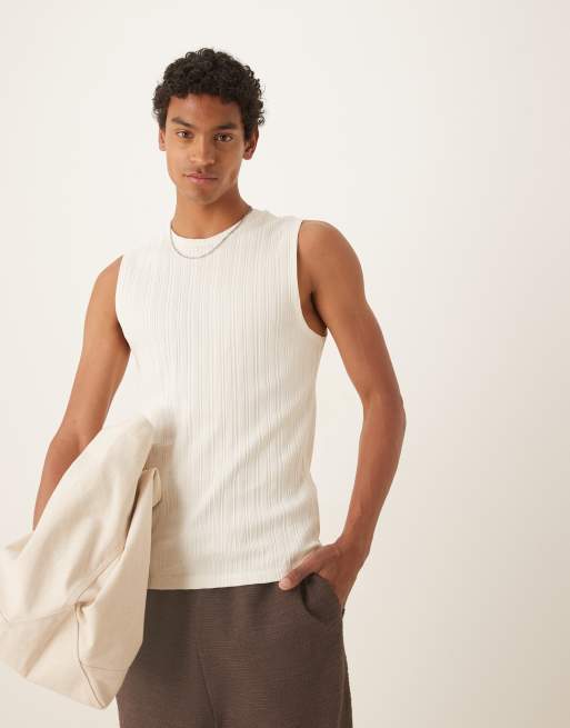ASOS DESIGN - Geribbelde muscle fit tanktop met textuur in crème