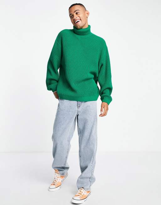 ASOS DESIGN - Geribbelde oversized visserstrui met col in flessengroen