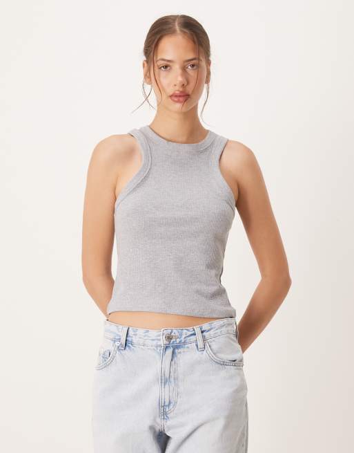 ASOS DESIGN - Geribbelde tanktop in gemêleerd grijs