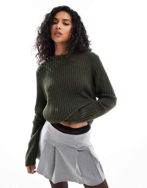 ASOS DESIGN - Geribbelde trui met ronde hals in kaki