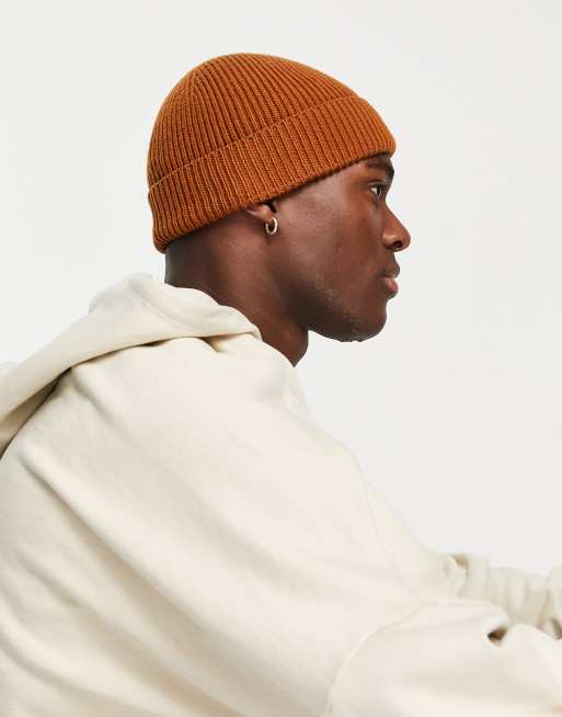 ASOS DESIGN - Geribbelde vissersbeanie in tabak