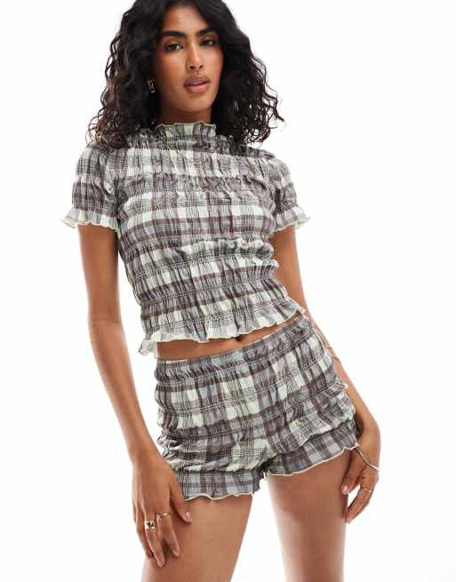 ASOS DESIGN - Gerimpeld baby T-shirt in bruin, deel van co-ord set