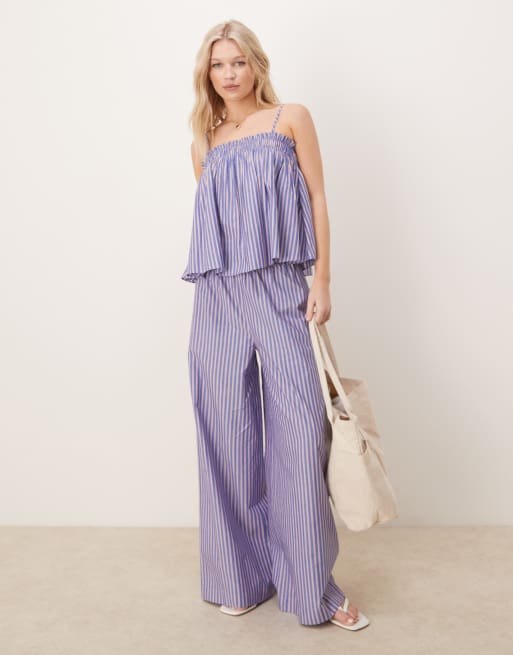 ASOS DESIGN - Gerimpelde gestreepte top in blauw en rood, deel van co-ord set