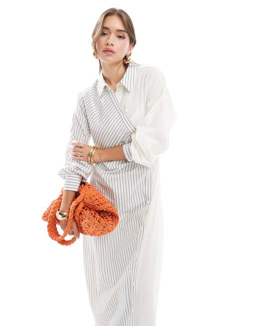 ASOS DESIGN - Gerimpelde maxi overhemdjurk met kleurvlakken en strepen in crème