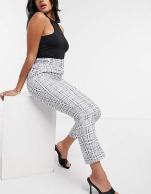 ASOS DESIGN - Geruite cigarette-broek met hoge taille en riem in zwart-wit