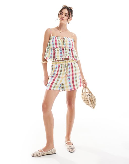 ASOS DESIGN - Geruite short van linnenmix in multi