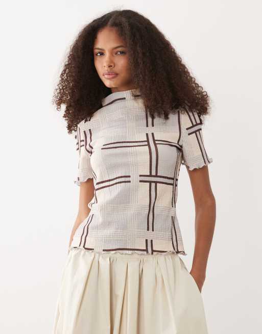 ASOS DESIGN - Geruite top met korte mouwen en hoge hals