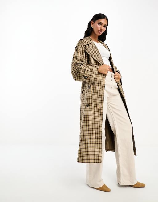 ASOS DESIGN - Geruite trenchcoat in bruin