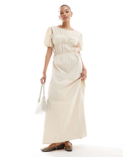 ASOS DESIGN - Gesmokte maxi jurk van popeline met gestrikte zijkant in stone