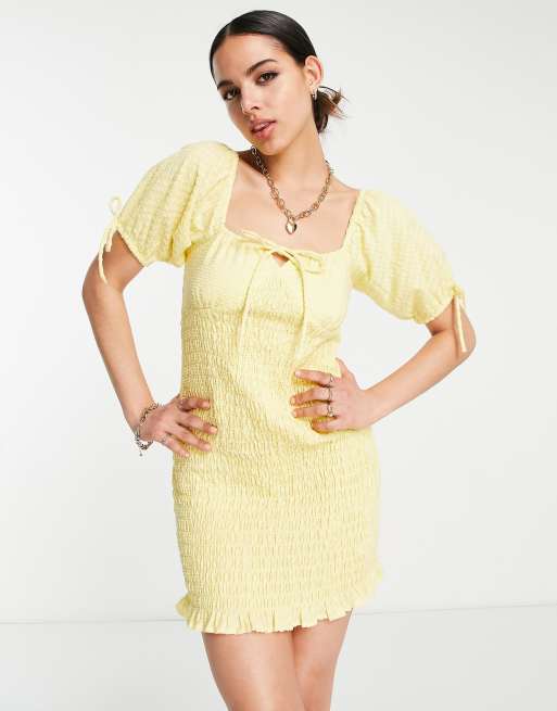 ASOS DESIGN - Gesmokte strandjurk met melkmeisjesdetails en textuur in geel
