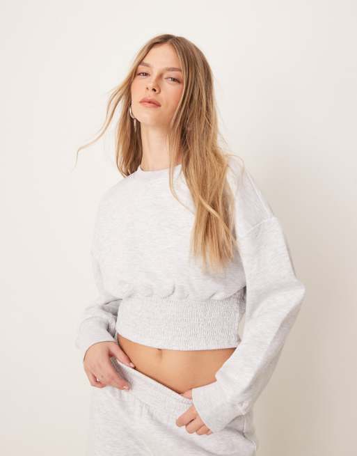 ASOS DESIGN - Gesmokte sweater met blousonmouwen in gemêleerd grijs