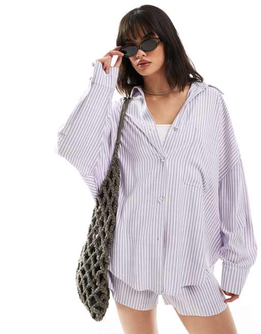 ASOS DESIGN - Gestreept oversized overhemd in paars, deel van co-ord set