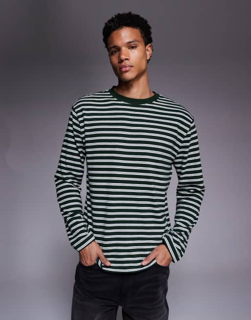 ASOS DESIGN - Gestreept zwaar ruimvallend T-shirt met lange mouwen en textuur in groen