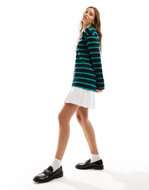 ASOS DESIGN - Gestreepte 2-in-1 sweaterjurk met lange mouwen en geplooide rok