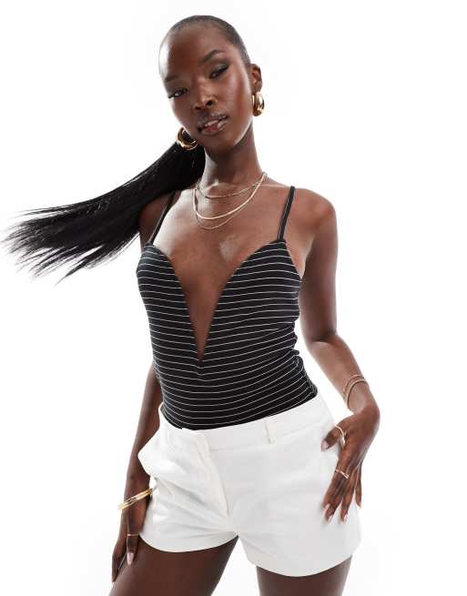 ASOS DESIGN - Gestreepte body met V-vormig diep decolleté