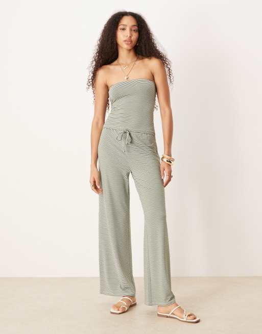 ASOS DESIGN - Gestreepte broek met wijde pijpen in groen, deel van co-ord set