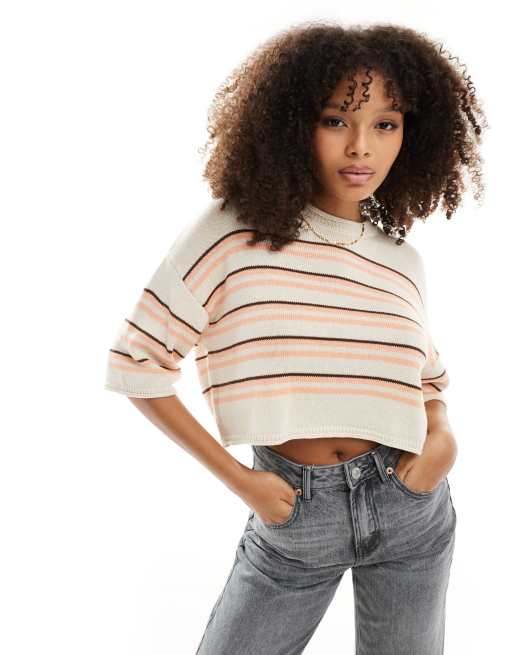 ASOS DESIGN - Gestreepte gebreide trui met korte mouwen in rood