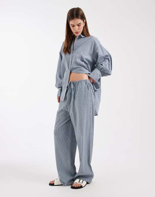 ASOS DESIGN - Gestreepte poplin broek met elastische taille in blauw