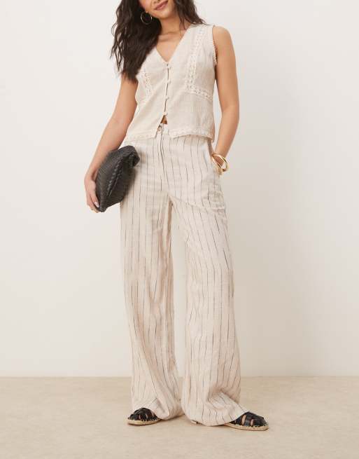ASOS DESIGN - Gestreepte ruimvallende broek van linnenmix met rechte pijpen in naturel strepen